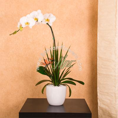 ابعاد : 30cm*70cm نوع پایه : سفال نام گل ها : 1 عدد ارکیده فالائنوپسیس مناسب برای : مراسم ترحیم-مراسم شاد-دکوراسیون کد محصول : G1049
